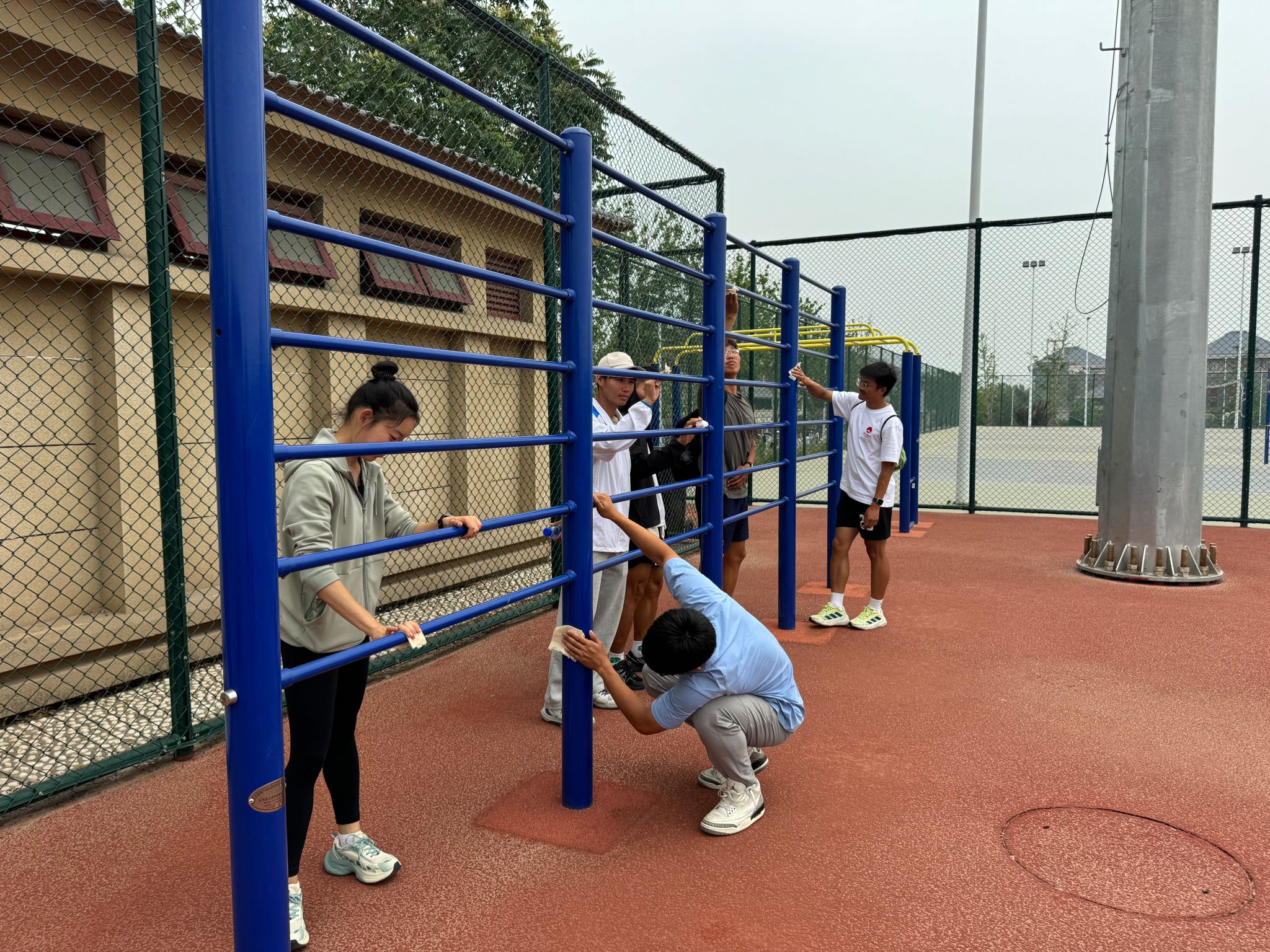 以“美化校园环境,守护师生健康”为目标,学生们分组对丰台校区室外健身器材及体测中心器械进行清洁。从单杠到乒乓球台,从除尘到消毒,同学们用汗水换来了器材的焕然一新,既提升了校园公共设施使用体验,更以实际行动诠释了“劳动是美好生活的基础”的马克思主义劳动观内核。