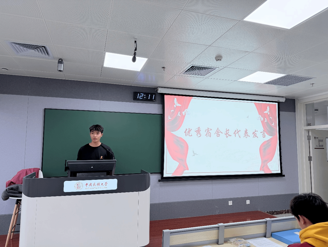 交流分享环节中,3号楼3363宿舍长符年冠作为宿舍长代表发言,分享了宿舍管理经验和心得。他提到,宿舍长应带头遵守各项规定,发挥模范带头作用,同时将认真组织室友签署责任书,以书面承诺强化责任意识,带领室友共同维护良好的宿舍环境,凝聚集体荣誉感。