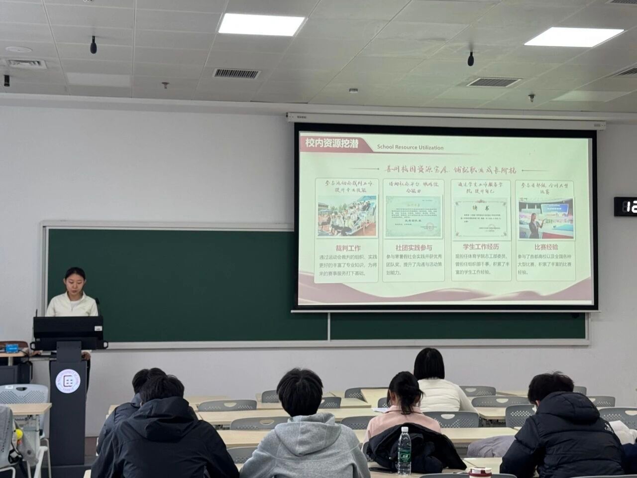 本次大赛分为成长组(聚焦在校学业提升与职业素养积累)和就业组(聚焦毕业后直接就业路径规划)两个赛道,各位参赛选手结合专业背景与个人兴趣,借助PPT进行系统阐述,围绕职业认知、目标设定及实施路径等方面展开论述,充分展现了体院学子扎实的专业素养、清晰的逻辑思维与前瞻性的职业视野。大赛评委从职业规划的可行性、行业适配性、个人优势挖掘等角度给予专业指导,并提出中肯建议,帮助选手进一步完善职业规划方案。