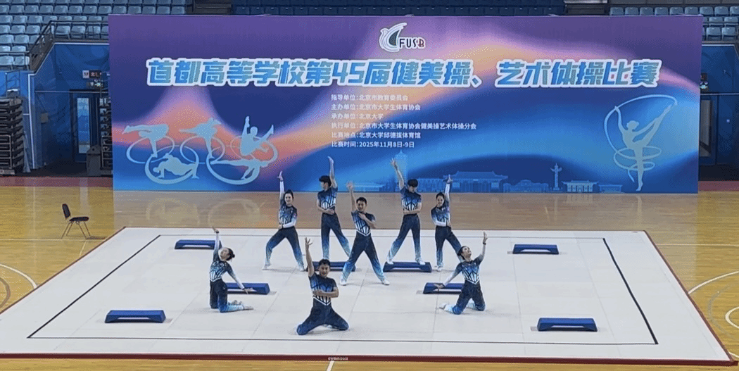 11月8日,由北京市教育委员会指导,北京市大学生体育协会主办、北京大学承办的首都高等学校第45届健美操、艺术体操比赛,在北京大学邱德拔体育馆圆满落下帷幕。在李俊怡教练的带领下,我校健美操队团结拼搏、奋勇争先,在集体、双人及单人项目中表现卓越,屡创佳绩。