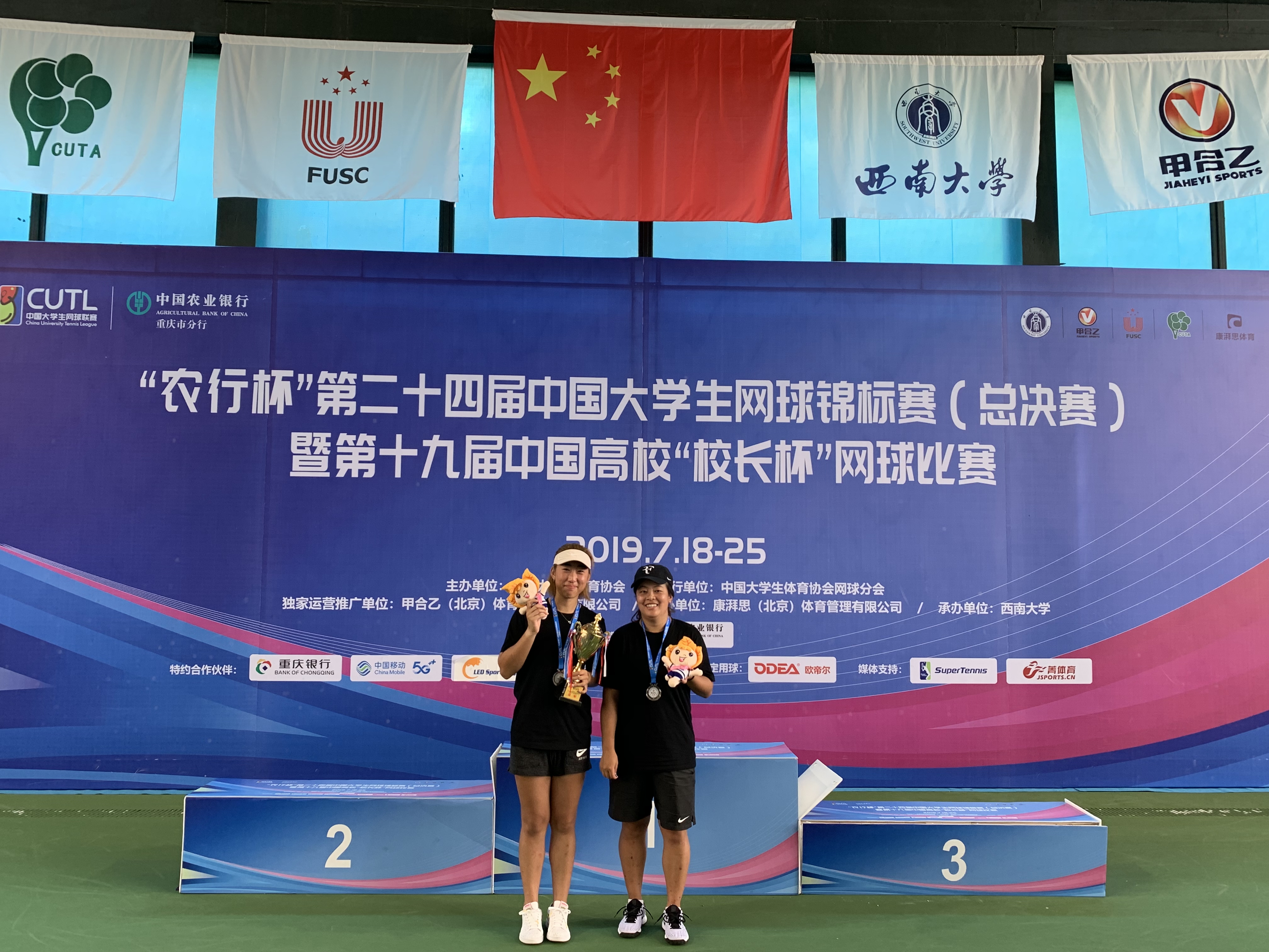 女队这边官昕和张爱湫慧作为一号种子,首轮轮空。16进8对阵重庆大学,6-3轻松取胜。8进4碰到实力不弱的上海交通大学,6-4再下一城。半决赛对阵强敌浙江大学,姑娘们没有一丝懈怠,顽强拼搏,抢七艰难取胜进入决赛,最后获得亚军的好成绩。