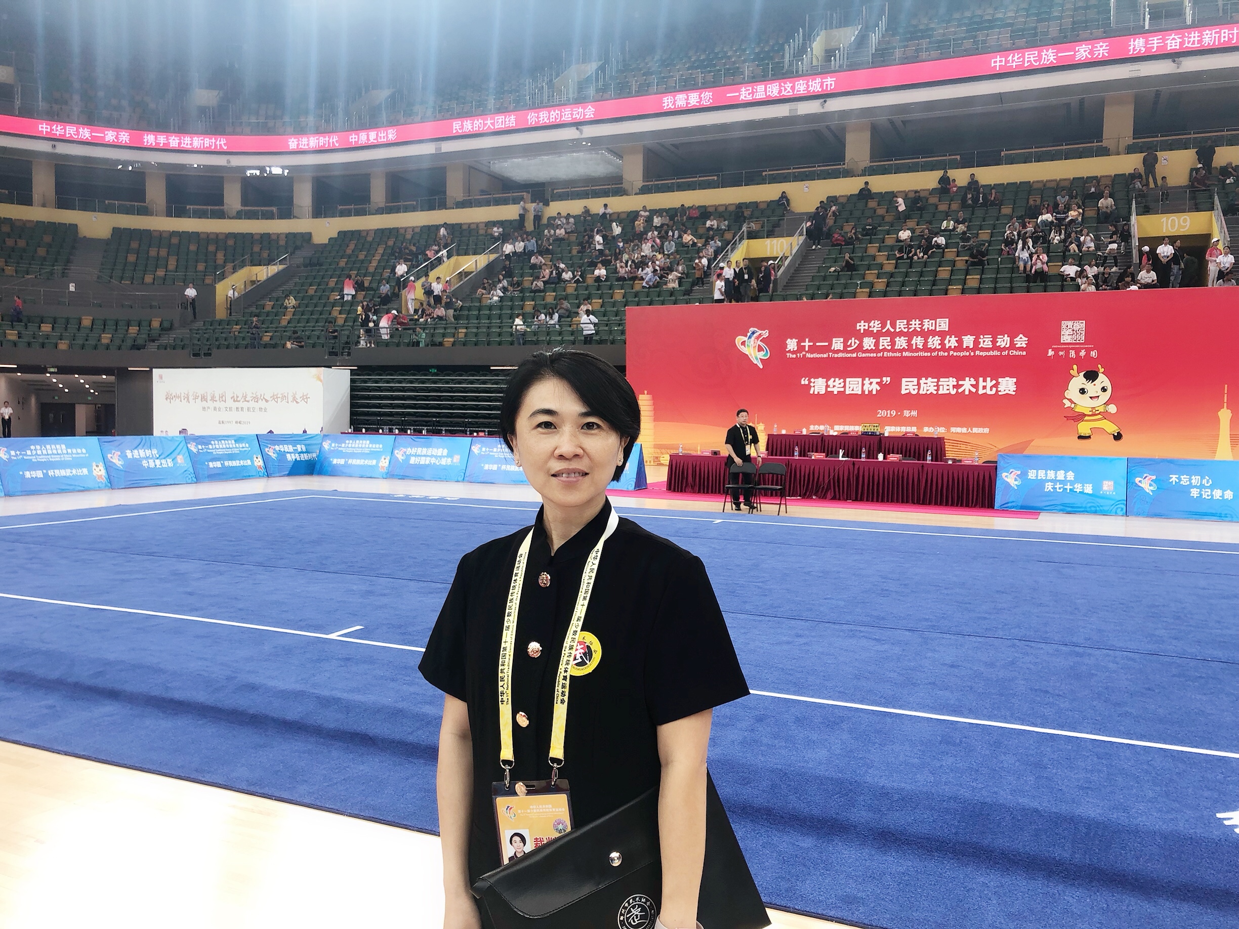 王老师担任本届民运会的民族武术项目的裁判工作。少数民族武术比赛分为拳术、器械、对练三大项,根据性别分为男子组和女子组进行比赛。此次共有来自全国28支代表队的150多位武林高手在为期三天的赛事中争夺18个单项的奖项。