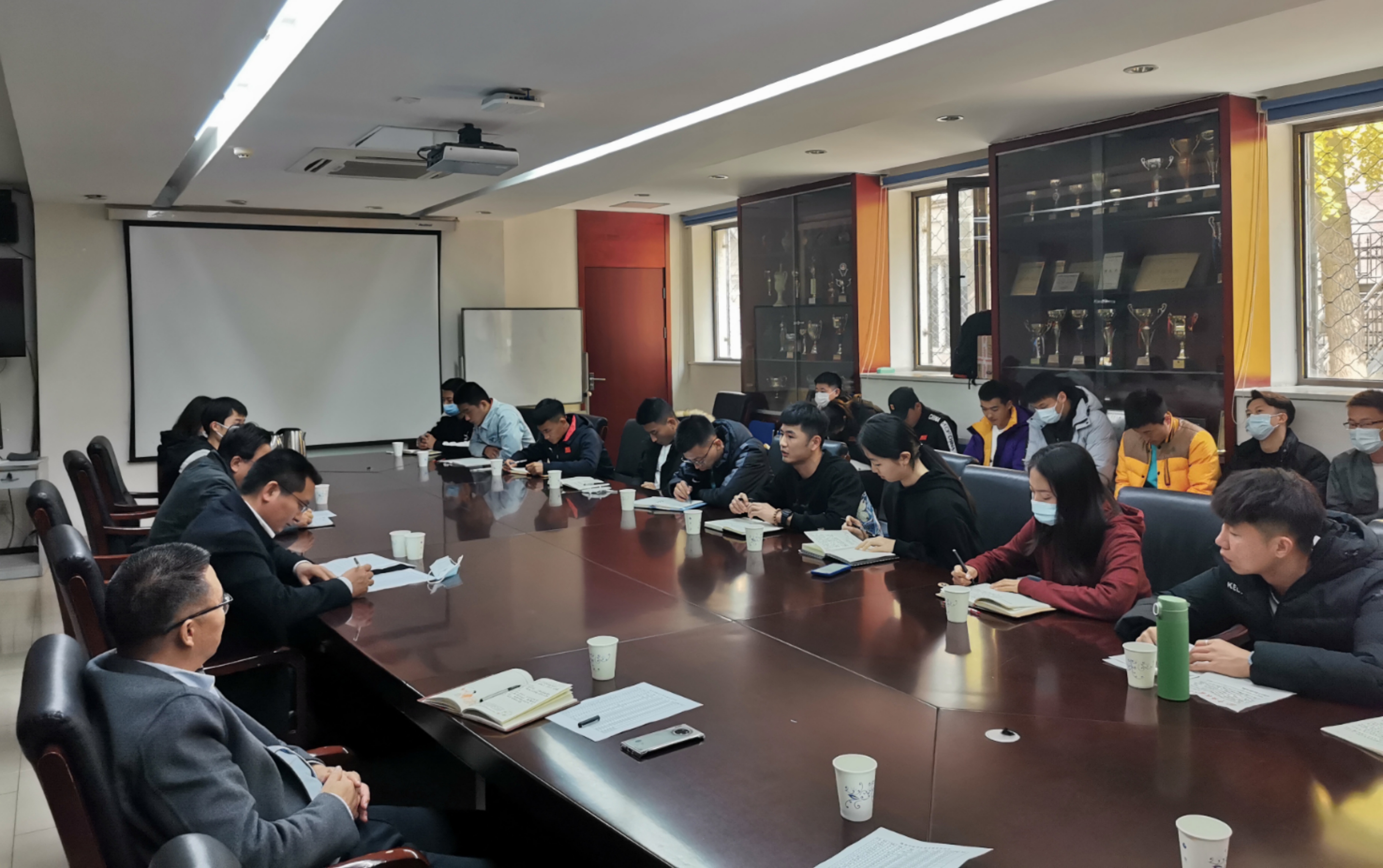 此次主题党日活动以专题研讨的形式展开,学生党员结合自身学习生活实际和经历,紧紧围绕“学生党员如何发挥先锋模范作用?”“对疫情防控常态化背景下学校管理工作的意见和建议”等主题踊跃发言,畅谈了自己的认识和体会以及对校园疫情防控相关工作的意见建议。李计勇认真倾听同学们的发言,不时与大家深入交流,现场气氛热烈活跃。
