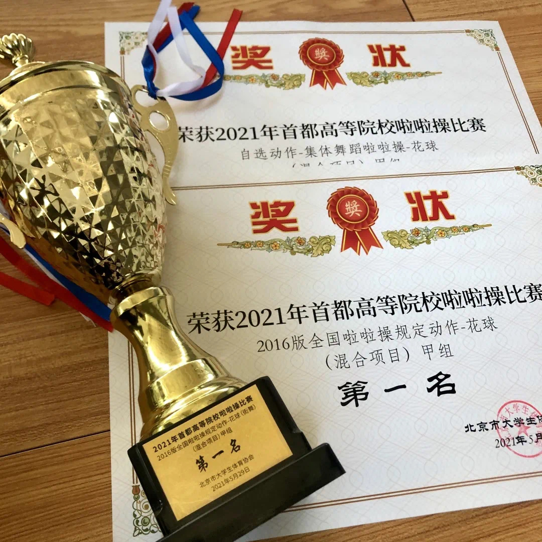 健美操队的队员们,早已在平时训练中百炼成钢,对比赛套路內化于心,外化于行。在高手如云的赛场上,队员们一鼓作气,奋勇争先,在干净利落的动作中表现出绝佳的精神风貌,在花球的一开一收间体现出整齐划一的动作质感,以精湛的技术与完美的表现力赢得了观众与裁判的赞赏。最终健美操队成功斩获全国啦啦操规定动作(花球)甲组冠军以及自选动作双人爵士与双人花球甲组季军,自选动作-集体舞蹈啦啦操(花球)则获得甲组第五名的好成绩。