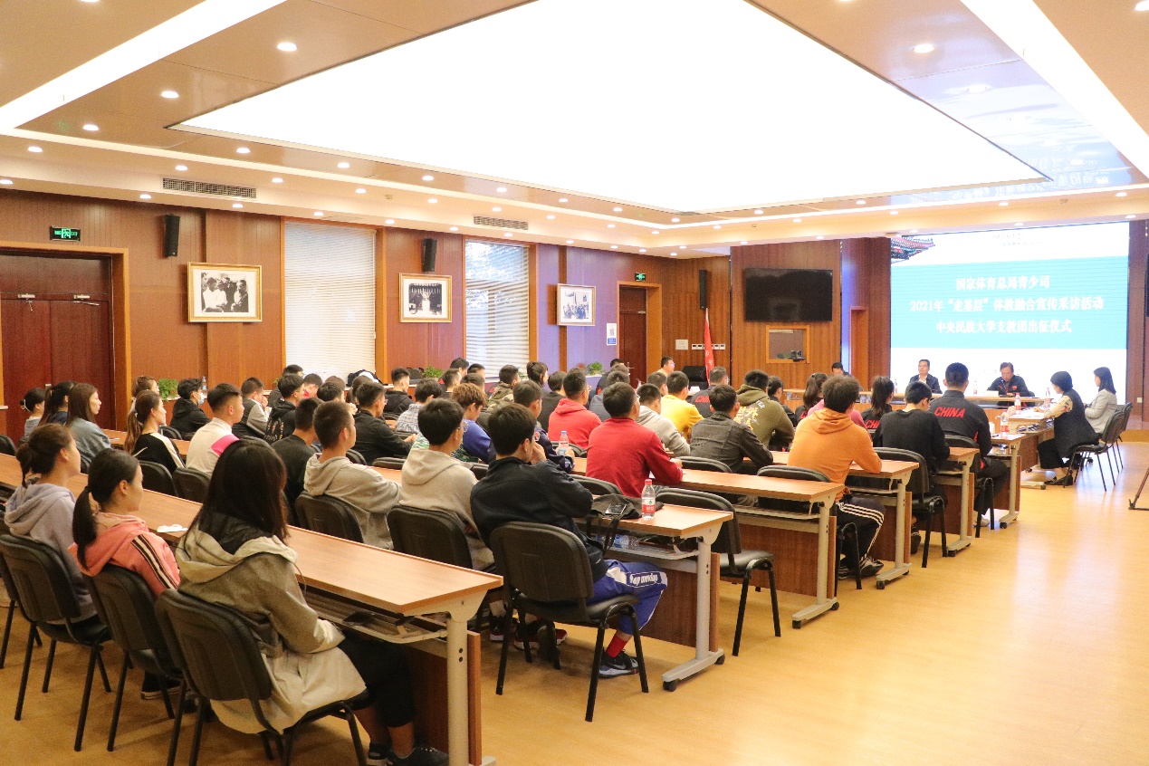 10月7日下午,国家体育总局青少司2021年“走基层”体教融合宣传采访活动bw必威西汉姆联官网支教团出征仪式在知行堂举行。校党委副书记、副校长李计勇作动员讲话,并为支教团授旗。