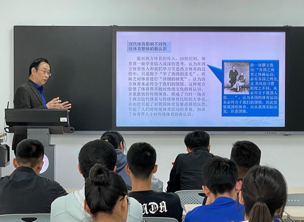 接着,崔乐泉先生结合自身主持和参与的科研项目,带领同学们回顾了当代中国民族传统体育发展过程中的重要节点,不仅让同学们对民族传统体育的发展历程有了更为清晰和正确的认识,而且也拓宽了在场学生的眼界。