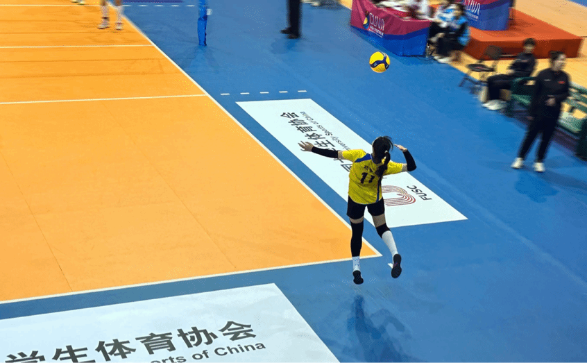 4月20日比赛正式开始,在为期10天的比赛中,女排队员在小组赛中逐渐找到竞赛状态,配合愈加熟练,在小组赛中力克内蒙古师范大学、北京师范大学、河南师范大学,成功以小组第一出线,在八进四的交叉赛中,在面对实力强劲的中国海洋大学,在连丢两局的逆境下,所有队员凭借着球不落地永不放弃的拼搏精神,连扳三局,最终以大比分3:2成功逆风翻盘。但在四进二的交叉赛中,女排队员奋战五局惜败于中央财经大学,无缘决赛。
