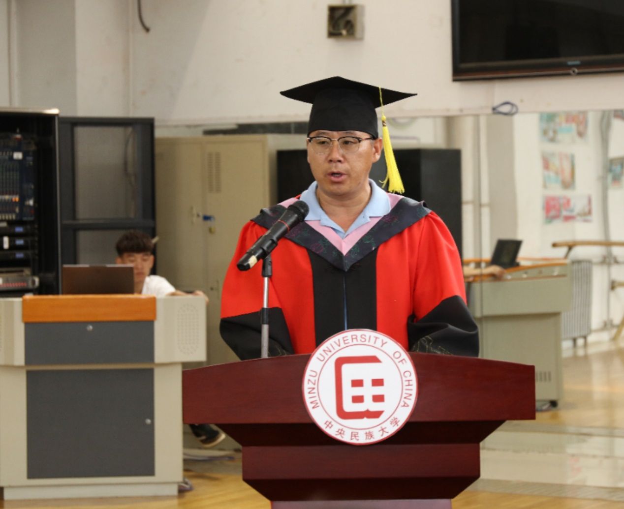 张涛院长在致辞中引用哥伦比亚大学校长在2023年毕业典礼演讲时的部分内容,希望大家建立一种开放的心态,在人际关系中保持同理心,并祝愿大家都能在平凡的生活中看到其中的复杂性,带上民大体院人的体魄、精神和灵魂,赶往人生的下一个站点。