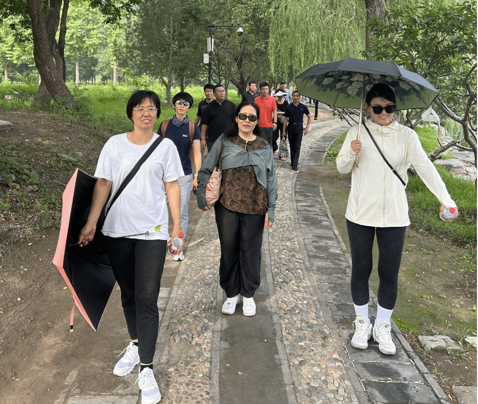 龙舟体验后,教师们开始了健步走活动。大家迎着朝阳,迈着轻快的步伐,一路欢声笑语、神采飞扬,精神抖擞地行走在优美宜人的圆明园九州后湖畔。在欣赏风景的同时,同事们互相交流,探讨专业问题,分享生活趣事,不仅锻炼了身体,也增进了彼此之间的友谊和团队凝聚力。