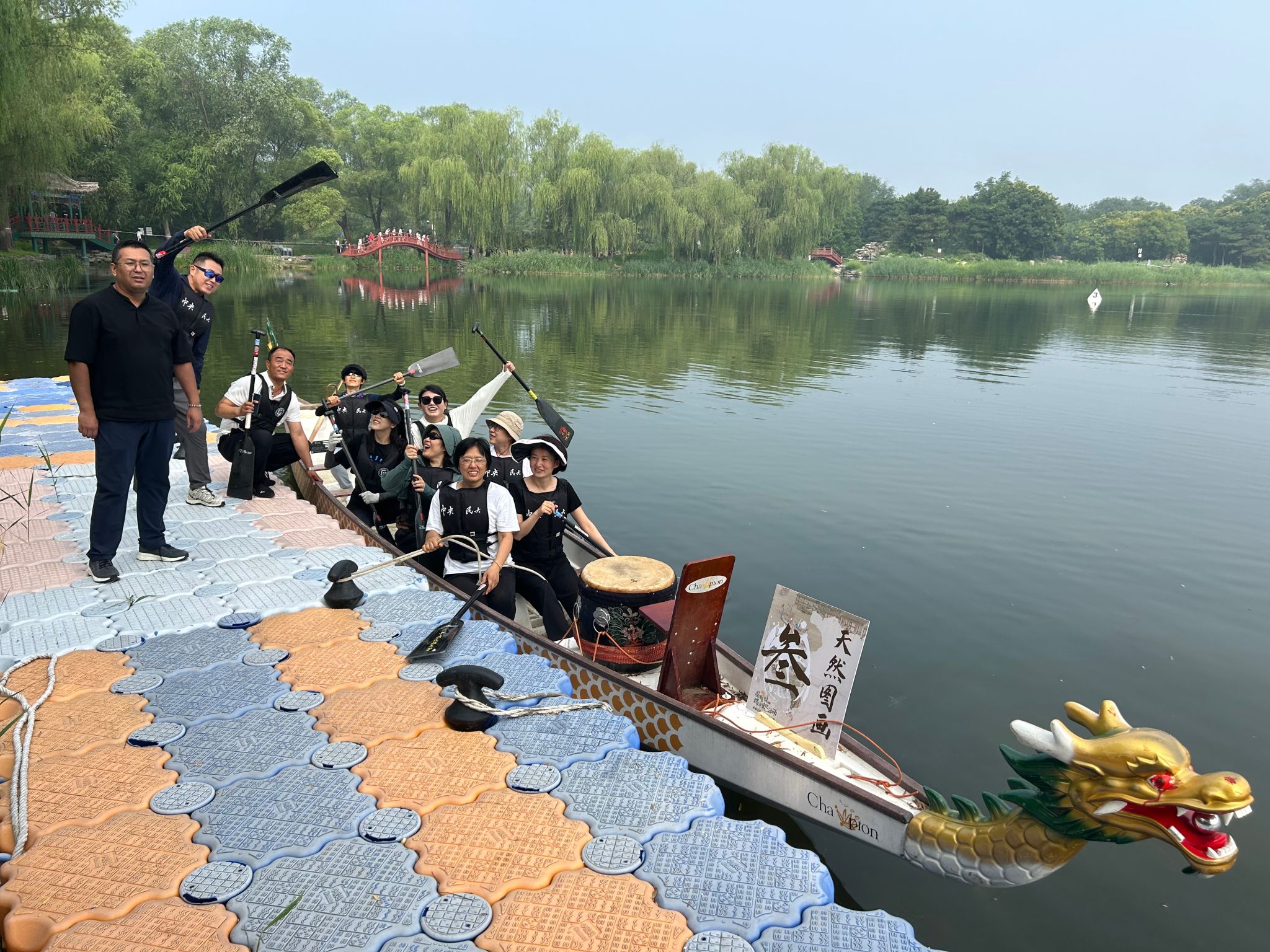 赛事结束后,学院教职工在工作人员的指导下穿上救生衣,迫不及待地登上龙舟,感受传统龙舟文化的独特魅力。