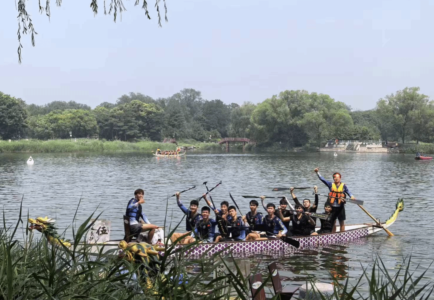 划龙舟活动以十二人龙舟混合追逐赛的形式开展,各高校的龙舟队在湖面上劈波斩浪,挥桨奋进。我院教师簇拥在湖边,为我校龙舟队加油鼓劲,现场十分热闹。伴随着铿锵有力的鼓点,整齐划一,奋勇向前,宛若游龙竞水,尽显两岸青年学子的青春朝气与毅勇之姿。
