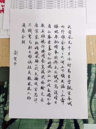 本次活动以毛泽东诗词《沁园春·雪》为主题,设立了硬笔、毛笔及板书三个项目,得到了学院教职工的积极响应。老师们满怀热忱,挥毫泼墨,展现了良好的文化修养与精神风貌。作品或刚劲有力,或清秀雅致,充分体现了中华书法的独特魅力。